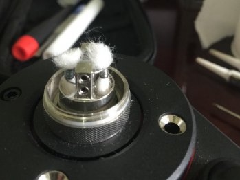 Everyone is raving about this tank but I'm battling like hell with dry hits! First off I built dual 28g coils at 0,52Ω (Micro Coils 1,5mm) and they were horizontal with Rayon wick... that didn't last long and I went off to see Rips review... he prefers dual vertical which I built at 0,46Ω with 27g kanthal. Wet the wicks and the first couple of vapes were great and it appeared (seeing bubbles) that the juice was flowing fine... but the dry hits came fast and furious... I even tried Native Wicks and that didn't help?