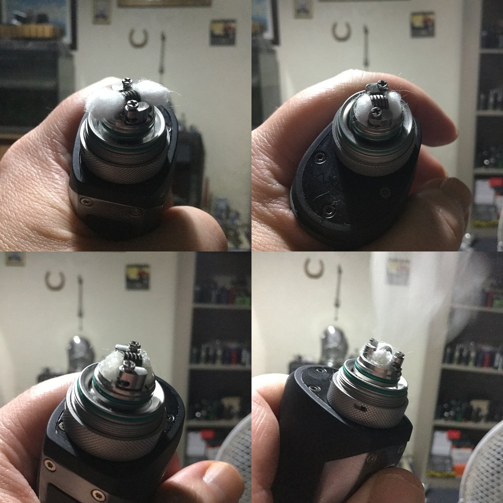 Wicking is just as easy, you have a channel each side for each end of your cotton to rest in which have 2 small holes on the bottom to feed your cotton with juice. Just cut your cotton bowtie style and just gently rest your cotton ends into the channels and that's it!