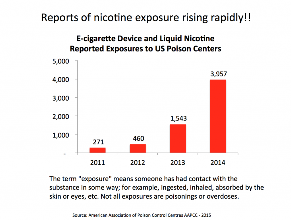- Campaign for Tobacco Free Kids: Poisoning Calls About E-Cigarettes and Liquid Nicotine More Than Doubled in 2014 – FDA Must Act to Protect Kids